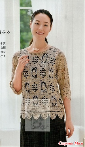 | Ажурный джемпер с рукавами 3/4. Крючок. | |