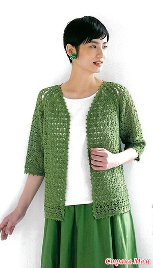 | Летний кардиган с красиво оформленными линиями реглана. Крючок. | |