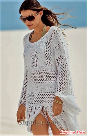 | Пляжная туника с длинной бахромой. Спицы. | |
