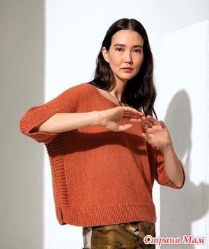 | Пуловер-наволочка с короткими рукавами. Спицы. | |