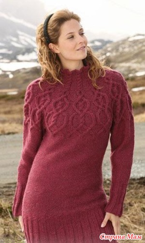 | Удлиненный пуловер свободного силуэта. Спицы. | |