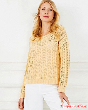 Вам потребуется: 6/6/7/8/9 мотков пряжи (60% хлопка, 40% акрила; 175 м/50 г), спицы № 3,5 и 4; круговые спицы № 3,5.