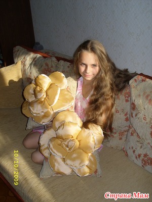 Были вырезаны 8 маленьких кругов (4 золотых и 4 белых) - диаметр круга 16 см; 10 больших кругов (5 золотых и 5 белых) - диаметр круга 20 см. Линия длиной 30см. и 10см. шириной - тоже белая и золотая (для середины.) Куплен синтепон = 1,0м. = 60руб. - хватило на 2 подушки и еще осталось на 0,5 подушки. Материал (шелк) - остаток от штор.... (сколько уже стоит не помню....). Читать далее»