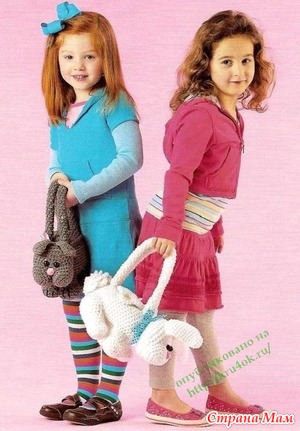 Предлагаю перевод книги с описанием вязаных сумочек для девочек в форме животных. Рассмотрим как связать основу для всех пяти сумок: коровка, поросенок, мишка, щенок, котенок и заяц: