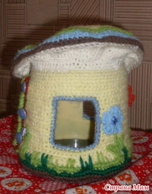Вот такой грибок-теремок я нашла на просторах интернета на сайте www/darnika.Мне он очень понравился.И даже я,не умея вязать крючком,решилась на эту затею.Тем более что у darniki хорошее описние.За кркас домика берется пустое пластиковое ведро(из под майонеза).Вырезаем окна,дверь и стеночки обвязываем ст.б\накида по кругу.По низу вывязывается травка,цветочки я пришывала отдельно.По кругу вывязывается и шляпка-крыша.Дверь на липучках-открывается и даже можно снимать с петелек-пуговиц.А вот ставенки не Читать далее»