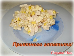 Отвариваем куринное филе, режем на кусочки. (Вместо куриного филе можно взять свинину)