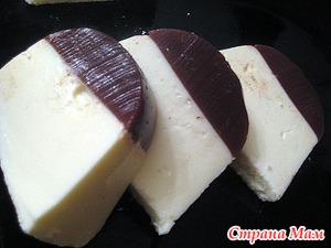 Добавить в массу кусочки печенья (грамм 100), кусочки шоколада (одна плитка). Смешать.