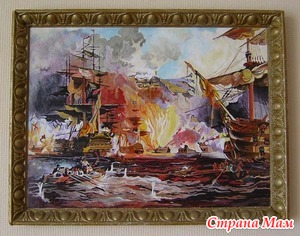 Материалы и инструменты: Вы знаете, что такое потолочный плинтус? Это плинтус, который клеится на потолок, а вернее между стеной и потолком. Он сделан из пенопласта, продается в хозяйственных и строительных магазинах. Полтора метра такого плинтуса стоит примерно 15-20 рублей (по ценам 2006 г.). Так что ваша рамочка обойдется вам очень дешево. Еще вам понадобится плотный картон, краска гуашевая "Бронза", кисточка, клей ПВА, нож (чтобы резать плинтус), лак по дереву, толстая капроновая нить.