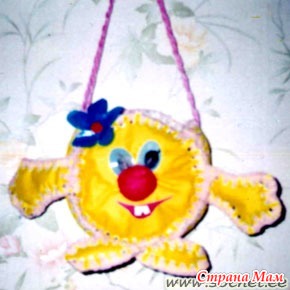 Лепим основу нашей игрушки. Для этого небольшой кусочек теста нужно скатать в шар. Получившийся шар слегка раскатываем скалкой до толщины 1 см (можно просто сдавить шар ладошками и сформировать круг).