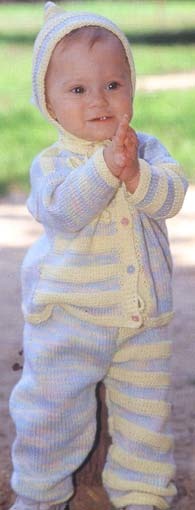 Вам потребуется: 150 г пряжи «Magic-Fiesta» (код 2201) и 100 г желтой пряжи «Турн-Вера» (код 992) в 2 сложения; спицы №3; крючок №3; тесьма-резинка длиной около 50 см; 5 пуговиц. Переплетение: лицевая гладь; изнаночная гладь; платочная вязка (во всех рядах все петли лицевые);Плотность вязания: 20 п. х 28 р. = 10 х 10 см, связано лицевой гладью.