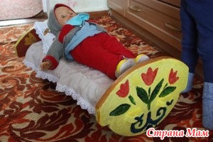 Олечке Дед Мороз в 2009 году подарил куклу-мальчика , которого она назвала Кузей. Всё бы ничего, да вот спать Кузе негде было. И наш папа смастерил по размеру куклы кроватку, из того что было. Ольге сразу понравилась новая забава, но вид у неё был далеко не эстетический, поэтому позже мы её преобразили.