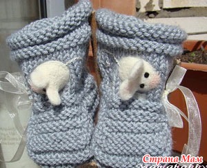 Размер: на 3-6 месяцев. Мышки нафильцованы иглой из не пряденой шерсти до выполнения заднего шва.