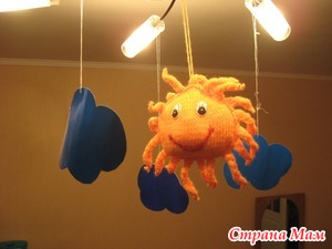 Вот такую игрушку я связала для дочки. У нас она висит на люстре и развлекает дочу еще с 3 месяцев. Вот описание и схемка:
