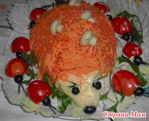 Змейка может быть любой, но всегда там присутствуют плав. сырок, чеснок и майонез, может быть добавлен картофель и консервированная рыба или отварное мясо или курица. А украшена она тем, что есть в холодильнике: зеленый горошек по всему телу, по центру кукуруза, глаза из маслин, зрачки и язык из перца Вот и все! Ваша фантазия и вы всегда на высоте