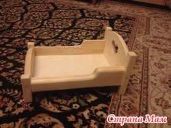 Деревянная кроватка для кукол, по спальному месту 20 на 30 см., ручная работа