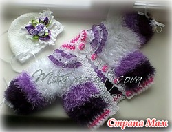 очень мягкий и нежный комплект для маленькой модницы. кофточка выполнена из пряжи травка украшена красивыми пуговками и кружевом. шапочка из детского акрила. цветочек на шапочке съёмный.