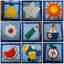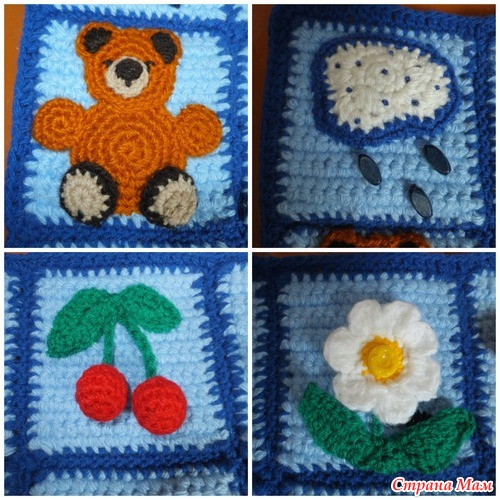 Развивающий детский коврик связан своими руками. Размер коврика 52х52см. Размер каждого квадрата 10х10см. Данное изделие можно использовать как напольный коврик. Коврик связан из 25 квадратов. Так же к нему идут отдельно 25 квадратов с такими же (либо похожими) картинками.