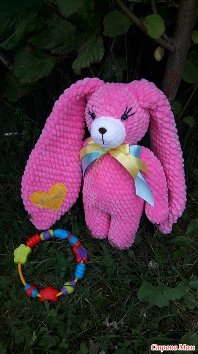 Зефирная зайка ручной работы, выполнена на заказ. Возможен повтор в любом оттенке и с вышивкой имени. Рост 30см без ушек и 58 см с ушками, выполнен из гипоаллегренной плюшевой пряжи, наполнитель синтепух.