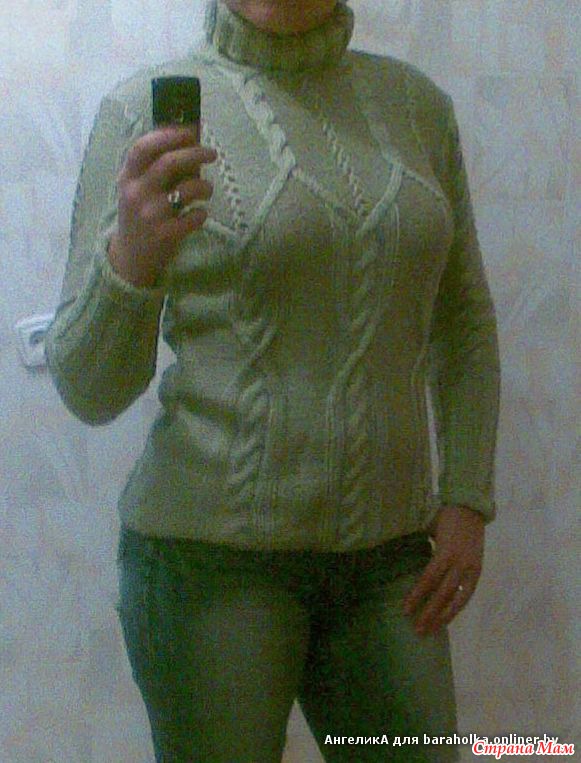 Свитер ручной вязки, размер 48-50, полушерсть. Горловину можно заворачивать как во внутрь, так и наружу.