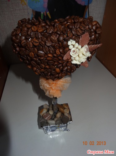 Кофейный топиарий, будет прекрасным подарком на любой праздник, особенно оценят кофеманы, так как пахнет дерево просто волшебно. Украсит любую квартиру. Создано из натуральных продуктов, цветочки сделаны своими руками из холодного фарфора, тонированы сухой пастелью, некоторые блестками. Стоимость этих деревьев 1300 рублей (высота с горшком 29 см, диаметр шарообразной кроны 9-10 см, диаметр кроны сердечком 12-13 см), возможно выполнение в любом количестве и цвете. Оплата наличным либо на карту сбербанка. Возможна отправка в другие города. Срок изготовления дерева 2 дня.