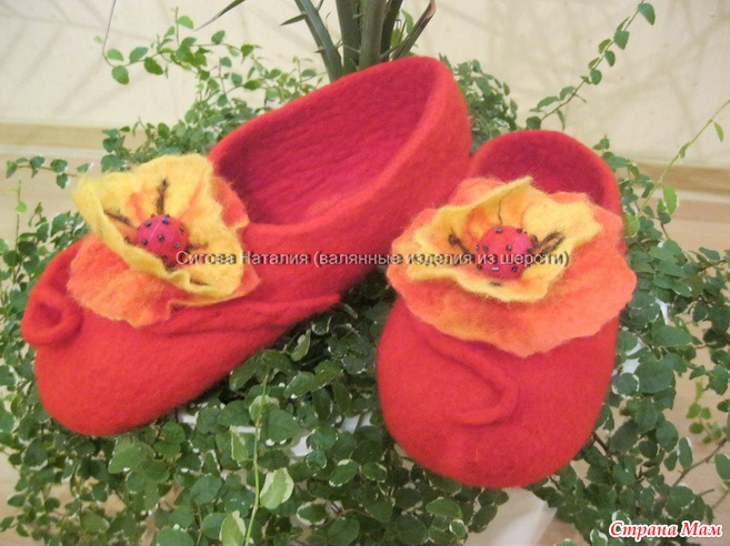Не лишним будет сказать, что полы в наших квартирах зимой редко бывают такими уж теплыми, поэтому валяные тапочки для дома это именно то, что нужно.Очень теплые, уютные и приятные на ощупь - греют, массируют, улучшают кровообращение. Лечебные свойства шерсти проверены на себе!