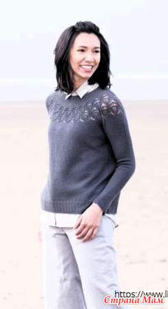 | Пуловер ADELAIDE с ажурной кокеткой. Спицы. | |