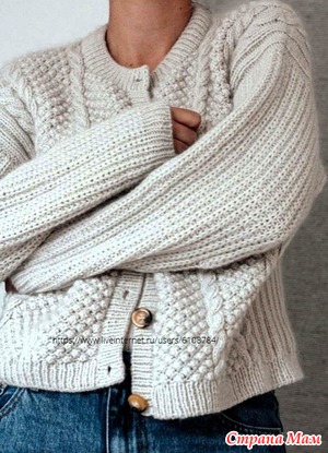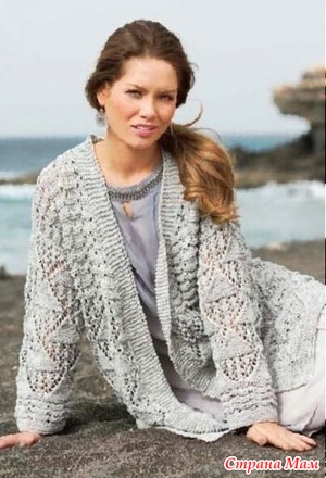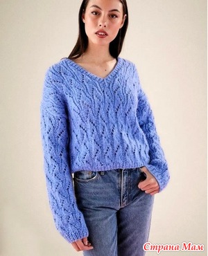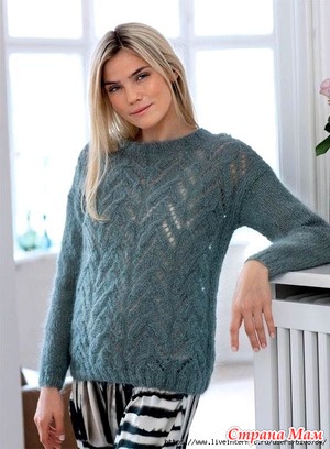 Для вязания нам потребуется 800 (850) 900 г светло-синей (цвет № 0174) пряжи LANGYARNS "Carpe Diem": 70% натуральная шерсть, 30% шерсть альпака; 90 м/50 г.