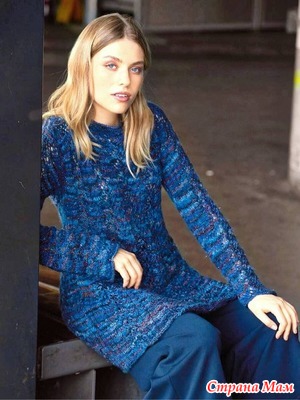 Для вязания нам потребуется 400 (450) 500 г ярко-бирюзовой (цвет № 06) пряжи ONLINE "Arnica": 77% хлопок, 23% полиэстер; 80 м/50 г.