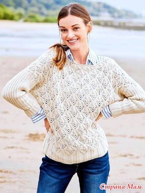 Этот пуловер с нежным «цветочным» узором и трапециевидной формой — поистине завораживающее изделие. Широкий вырез горловины «лодочка» и рукава «летучая мышь» вяжутся легко и просто, позволяя полностью сосредоточиться на великолепном ажуре. Перед и спинка вяжутся отдельно снизу вверх. Рукава вяжутся простой резинкой. Белая шерстяная пряжа с приятным сливочным подтоном прекрасно подчеркивает узор. Европейские размеры: 36/38 (42/44). Российские размеры: 42/44 (48/50). Читать далее»