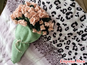 Всем доброго времени суток. Давно ничего не показывала. Связала плед-букет крючком в подарок на Новый год. Сейчас на Ютуб канале и в Пинтерест много различных схем этого пледа.. В основе круг нужного размера с прибавками. Вот такой получился у меня. Пряжа хлопок-травка с маленьким ворсом. 750м/100г в 2 нити. Крючок 2, 25. Для обвязки и листочков были остатки полушерсти белорусской. Общий вес 550г. Размер полученный 1м45см. По периметру вяжутся либо розочки, либо колокольчики. Читать далее»