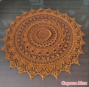 Еще одна салфеточка по дизайну Азы Отрошко. Просто захотелось ее связать. Схем не будет, так как описание платное. Нитки Ярнарт виолет, 282м/50гр, крючок 1,5. Диаметр 54 см. Ниток ушло чуть больше 100гр. Цвет телефон не передает с большого расстояния почему-то. А это натуральный цвет. Всем спасибо за просмотр!!!
