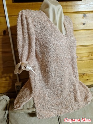 Дорогие страномамочки! Новым годом! С новым счастьем! Я к вам с хвостиком, вязала я себе кофточку к новому году, да не успела. Довязывала уже после. Так захотелось мне с пайетками сотворить что-нибудь, заказала себе ниточки с пайетками, кстати больше такие брать не буду, не понравились. И была у меня пряжа Ализе миди, Я ее разделила на три нитки и добавила к ней нитку с пайетками. Кофточка получилась лёгкая и тонкая. Вязала регланом с анатомическим ростком. Спасибо за внимание!