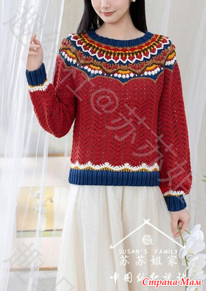 Изделие состоит из передней части, задней части, рукавов, подола, каймы и пуговиц в виде китайского узла. Сначала свяжите переднюю и заднюю части отдельно, затем соедините некоторые части. Далее свяжите и пришейте рукава. Затем свяжите подол из передней и задней частей отдельно. Наконец, свяжите кайму и пришейте пуговицы в виде китайского узла. Для получения информации о необходимых инструментах, пряже и цветовой гамме обратитесь к бумажной выкройке. Читать далее»