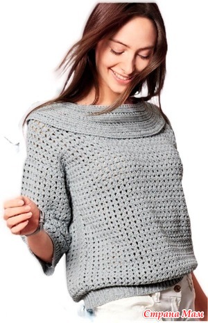 Серо-зелёный джемпер, выполненный в филейной технике вязания. Прямой фасон чуть ниже талии, длинные рукава с высокими манжетами из рельефной резинки и широкий вырез лодочкой, кокетливо приоткрывающий линию плеч. Если связать в голубых оттенках, то узор будет похож на пушистые облачка! Для вязания нам потребуется 6 мотков — на размер 44-46 — серо-зелёной пряжи: 50% хлопок, 50% акрил; 50 гр — 115 м. Крючок № 3-3,5. https://paradosik-handmade.ru/