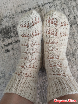 Девочки и снова здравствуйте У меня снова носочки и на этот раз белые Носочки связаны из полушерсти в 2 нити Связаны на 44 петли И небольшое продвижение Узор на 22 петли 1 ряд 2 изнаночные,6 лицевых, 2 вместе в право,накид, 2 лицевые.накид 2 вместе в лево, 6 лицевых, 2 изнаночные. Читать далее»