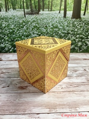 Доброе утро, день или вечер, всем кто заглянул ко мне в гости! Эта коробочка будет лежать в, ,заначке,, думаю она будет очень хорошА для золотой свадьбы. Жёлтая бумага - металлик. Плотностью 270 гр. Зеркальная - цвет меди, плотность 300 гр. Здесь вы видите моё любимое занятие - составление узора. Такое составление узора я сделала только на крышке коробочки. Приклеивать бумажную вырубку на зеркальную бумагу - у меня нет уверенности, что она позже не отклеится. Читать далее»