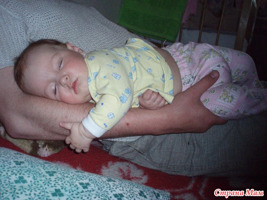 Сплю у папы на руке,очень нравиться так мне,Ведь я маленький ленивец,вот и висну на руке.