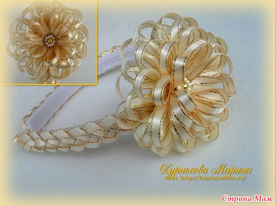 Ободок для девочки с пышным цветочком.Цвет бежевый с золотом)))