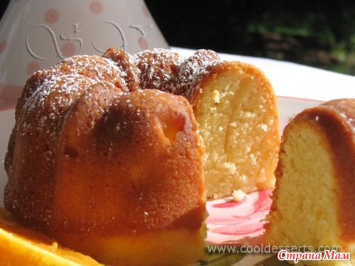 Просеять муку с разрыхлителем и солью. Вмешать сухие ингредиенты в маслянно-желтковую массу в 3 приёма, чередуя с апельсиновым соком.