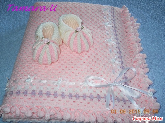 розовый плед для новорожденной. связан крючком,бабушкиным квадратом,ширина 1м/1м. и пинеточки зефирки,связанные спицами