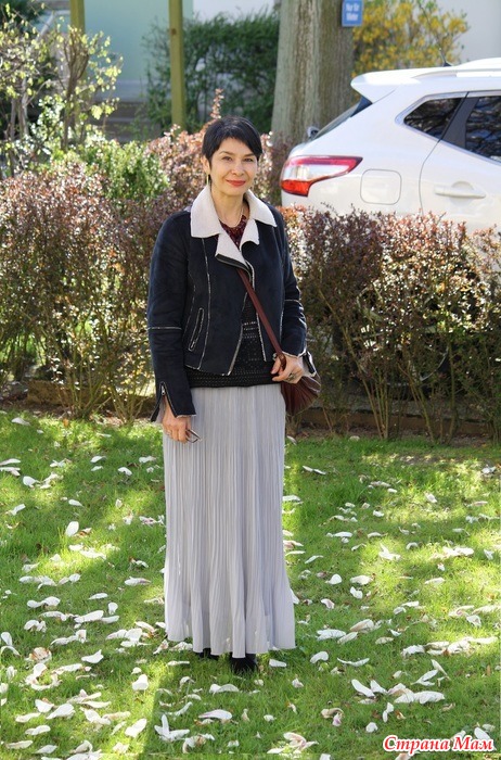 21.04.-черный пуловер, серая юбка.Синяя косуха. Акценты в бордо. на самом деле не так тепло, около 12, и холодный ветер. Но выглядит так, будто у нас разгар весны