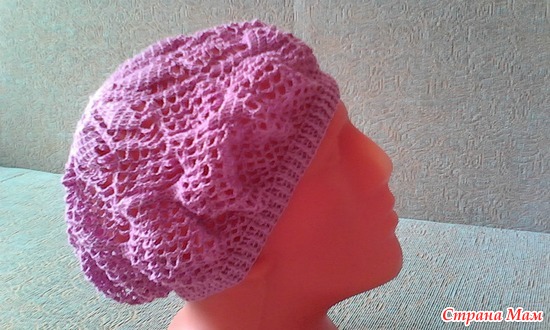 На окружность головы 56-58 см., нитки Кружевная от Пехорки 50г/280м, ушло чуть меньше мотка. Цвет красивый Камелия. Крючок №2
