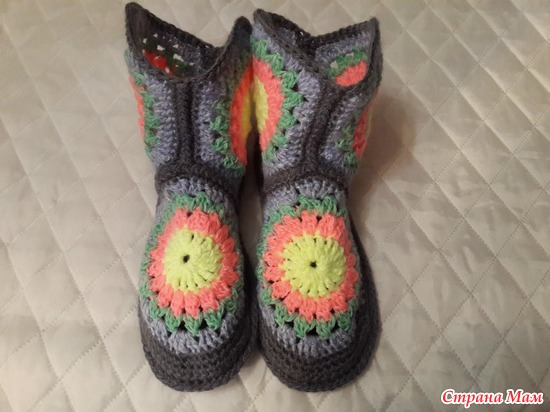Вязаные сапожки из шестигранных мотивов, на подошве-стельке войлочной.