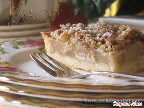 Достать горячий пирог, присыпать приготовленным штрейзелем, и запечь ещё 10 мин.