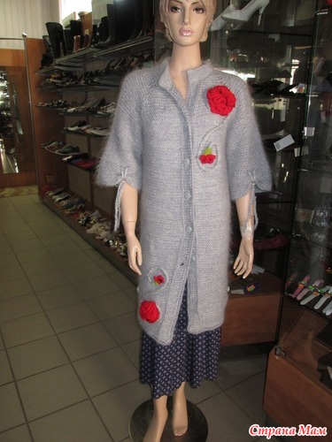 Пальто, связано из полушерстяной прияжи + мохер классик+ фатазия украшения
