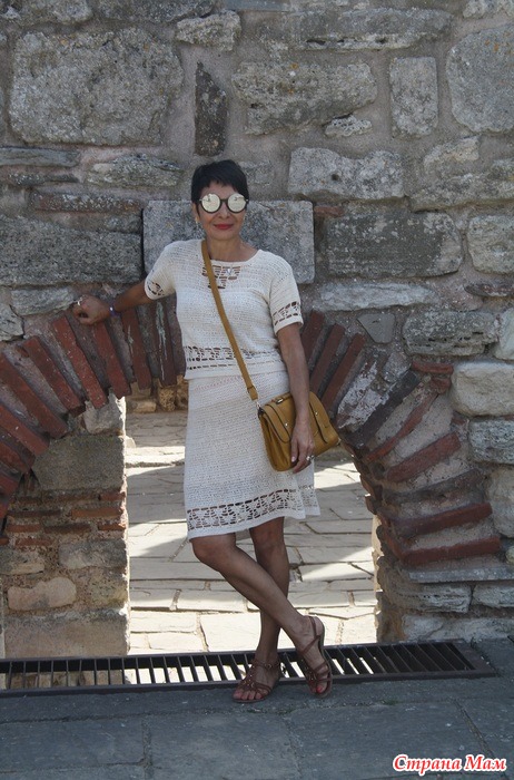 Сначала я сама не могла понять, почему мои модели этой пряжи с 2010 года, в отпуске так смотрятся... С синим-с хаки и т.д....Потом до меня дошло: цвет песка...а это значит..к руинам)) подойдет, к зелени тоже, к камням тоже...дело в цвете...Он нейтральный и естественного оттенка. Я сама на комп когда сбросила фото, подумала...да) на фоне руин)) я в точку попала))