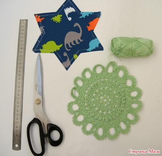 Салфетка растет по-тихоньку. Раскроила детскую куртку из плащевой ткани с красивым рисунком "динозаврики". Жду когда приедет заказанный подклад для курточки и можно будет пуститься во все тяжкие)))
