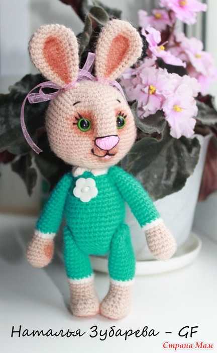 Зайка связана крючком № 1,5 из акрила и полушерсти.