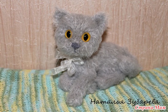 Связана крючком из фактурной пряжи ЛТС, имеет медный проволочный каркас, что позволяет придать ей любую позу, наполнитель синтепон.