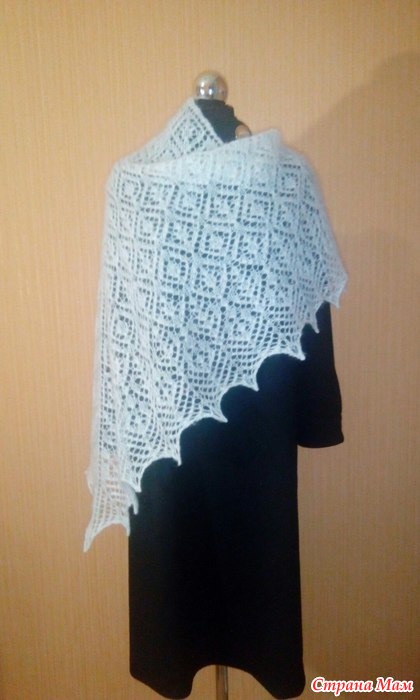 Шаль "Ярославна" по описанию Ольги Ростовской. Пряжа козий пух на швейной нитке.